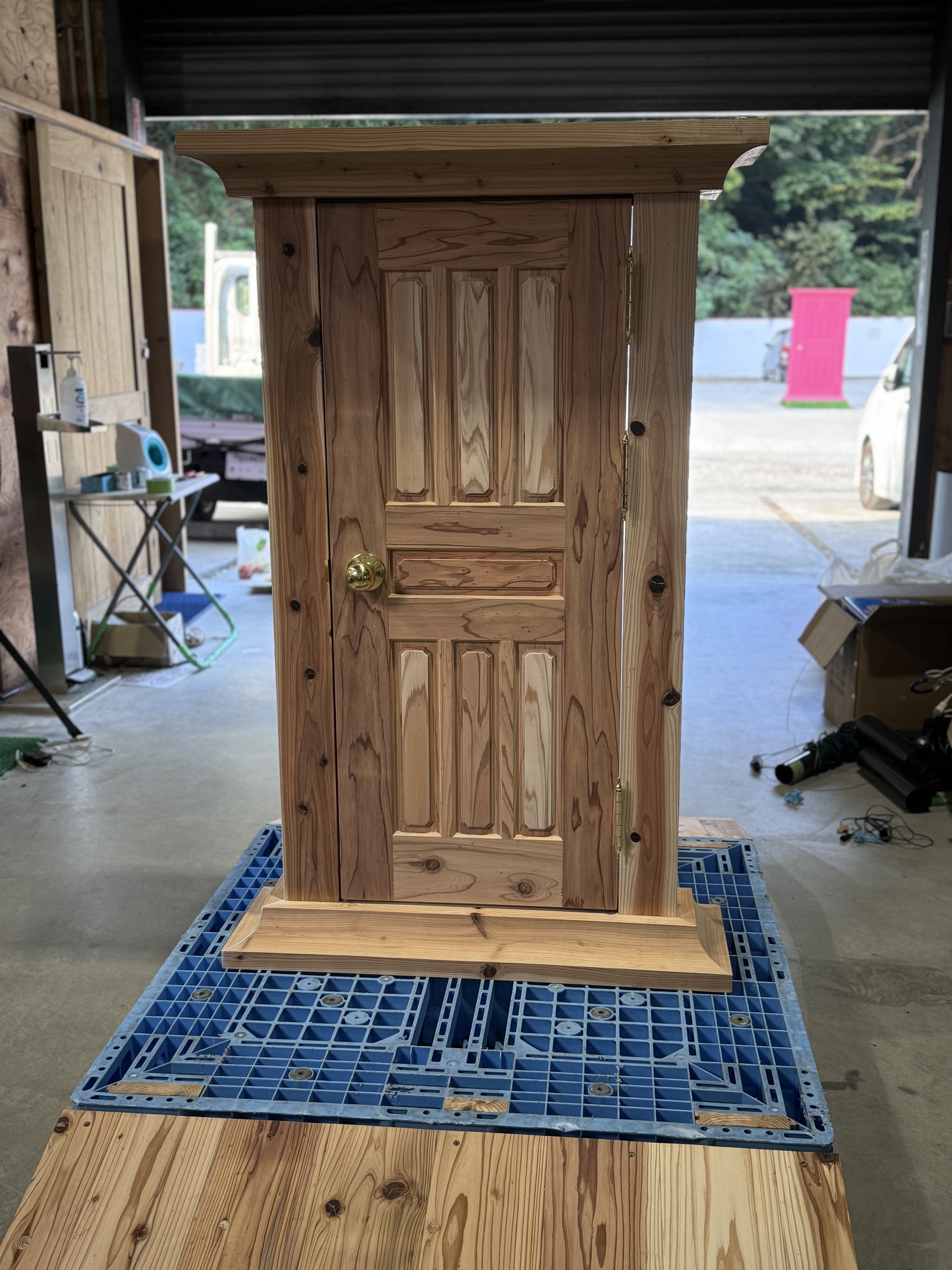鶴嶋工務店が木でドアをつくり