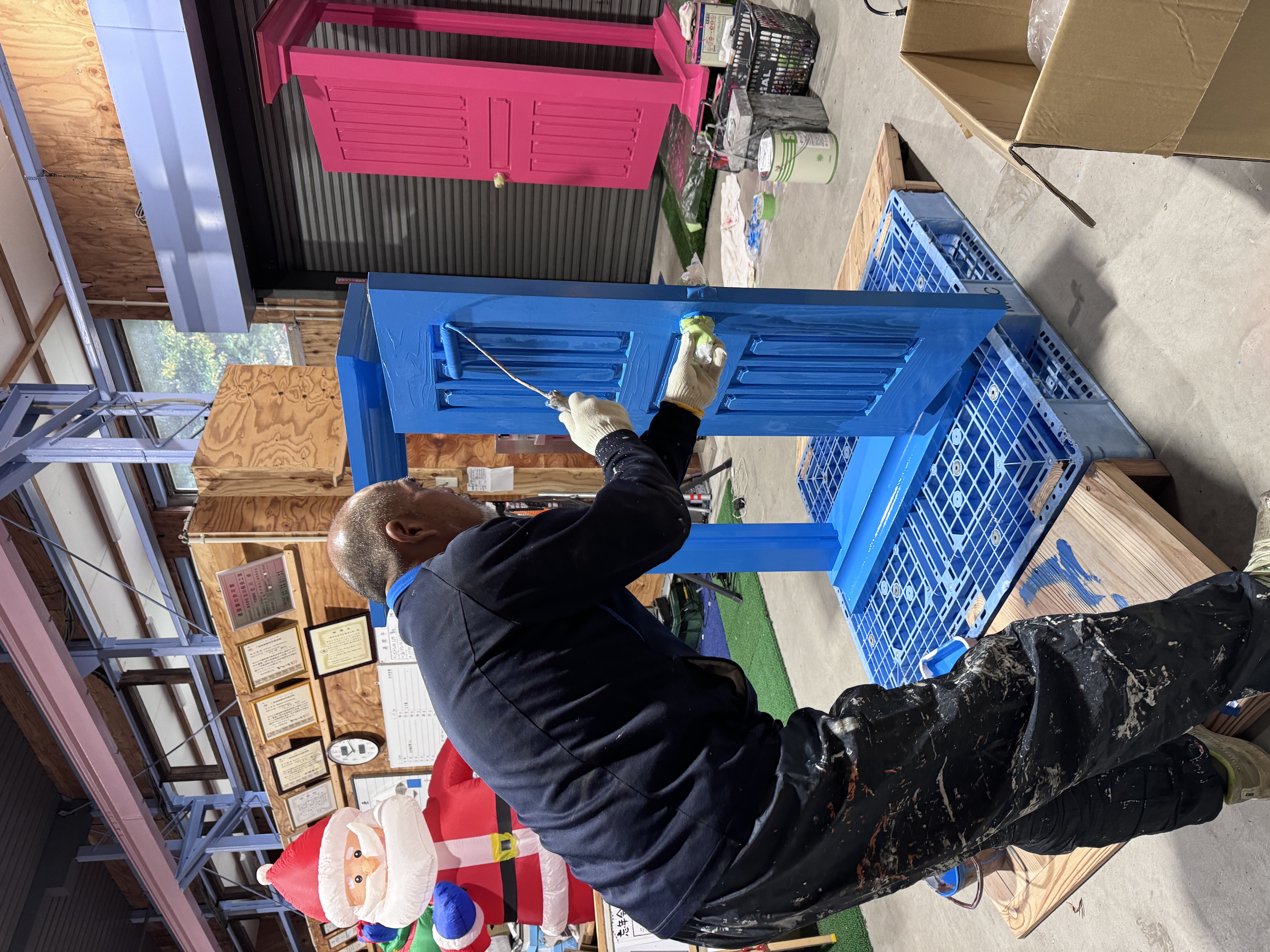 今回もピンク同様、鶴嶋工務店の技術が光る手作りドア&スワシタさんの塗装&古川板金の屋根のコラボレーション作品です。