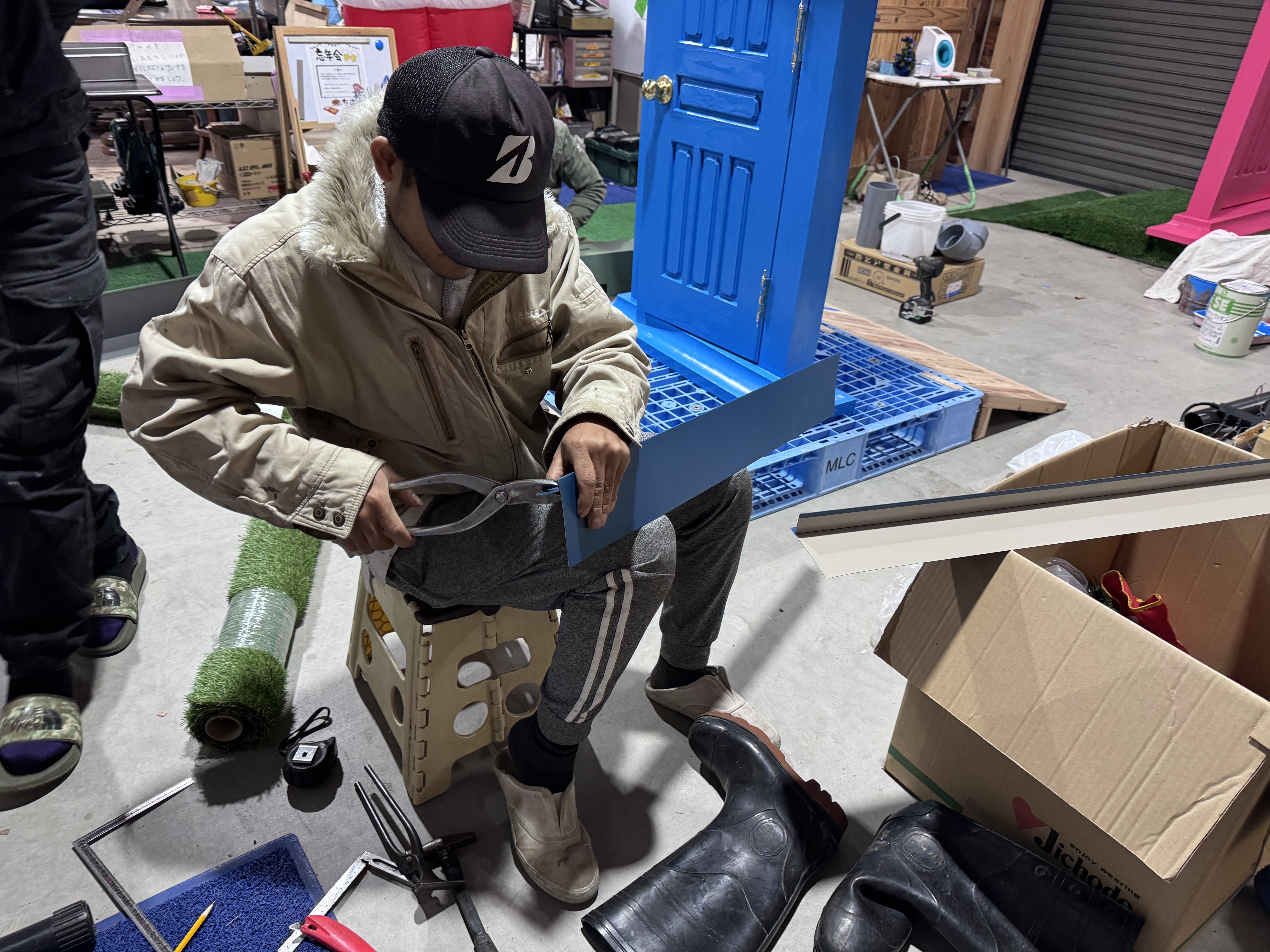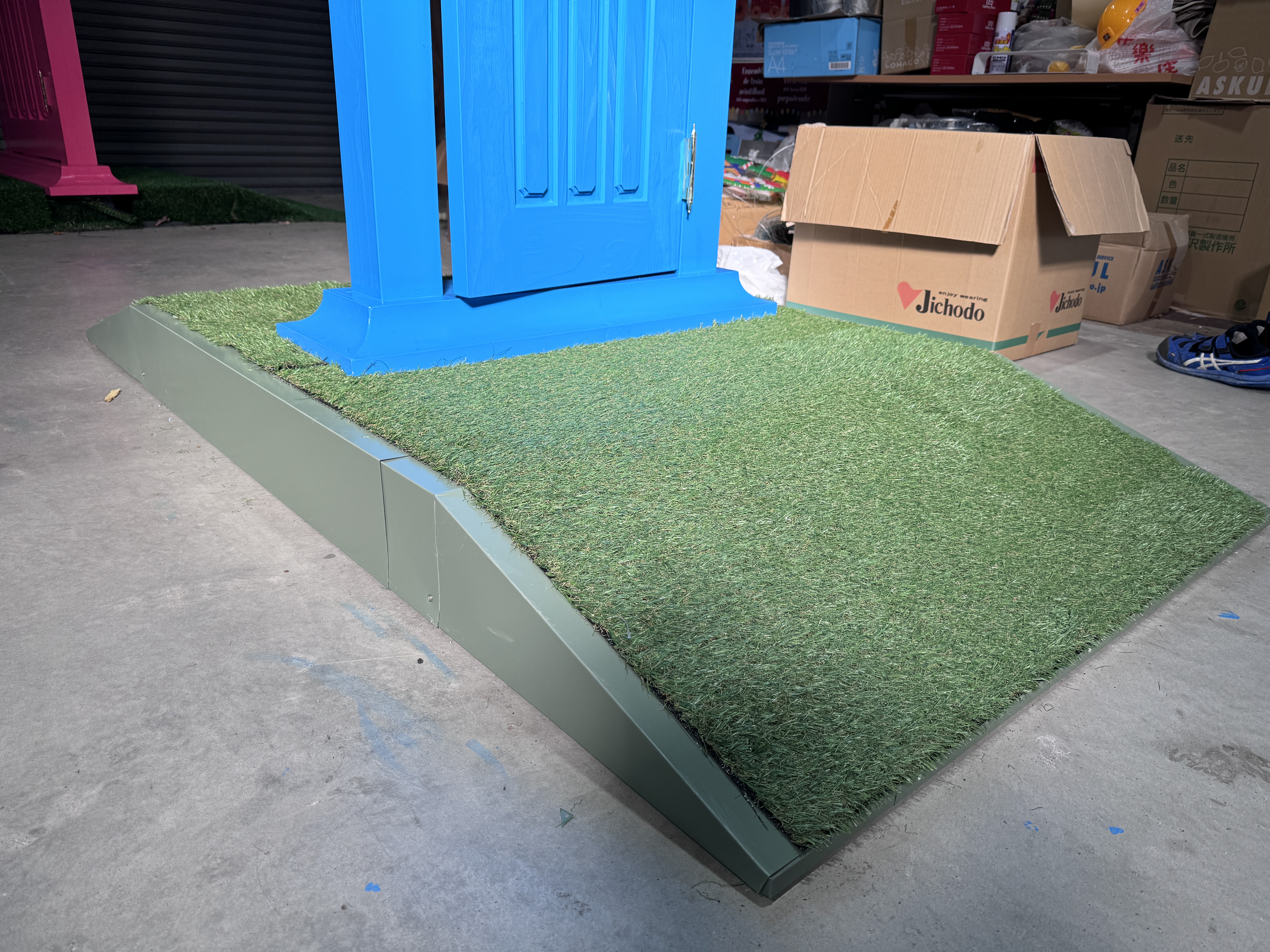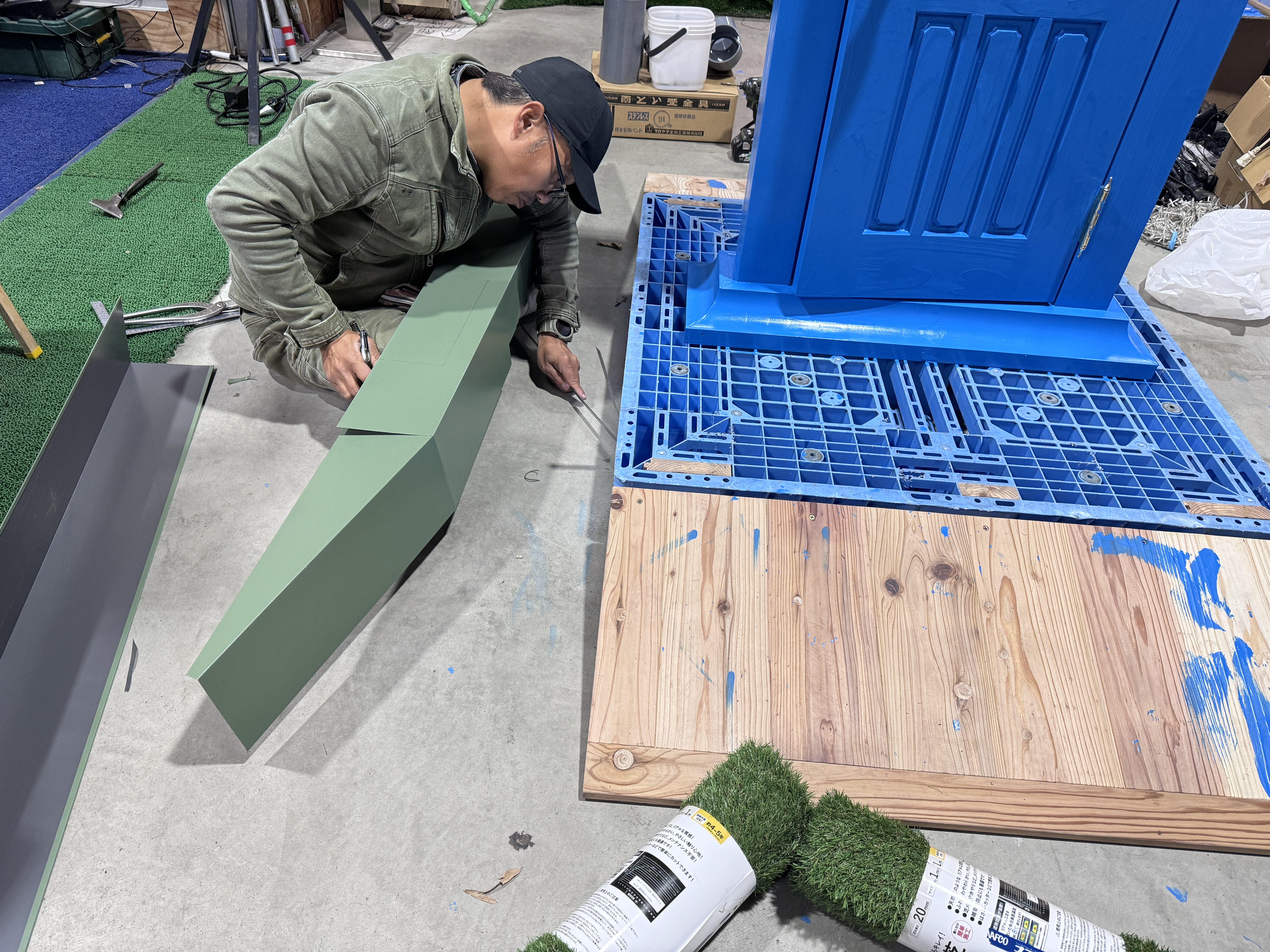 常務が買ってきた人工芝が…小さい!微妙~に足りん。なんで!って私に怒られ